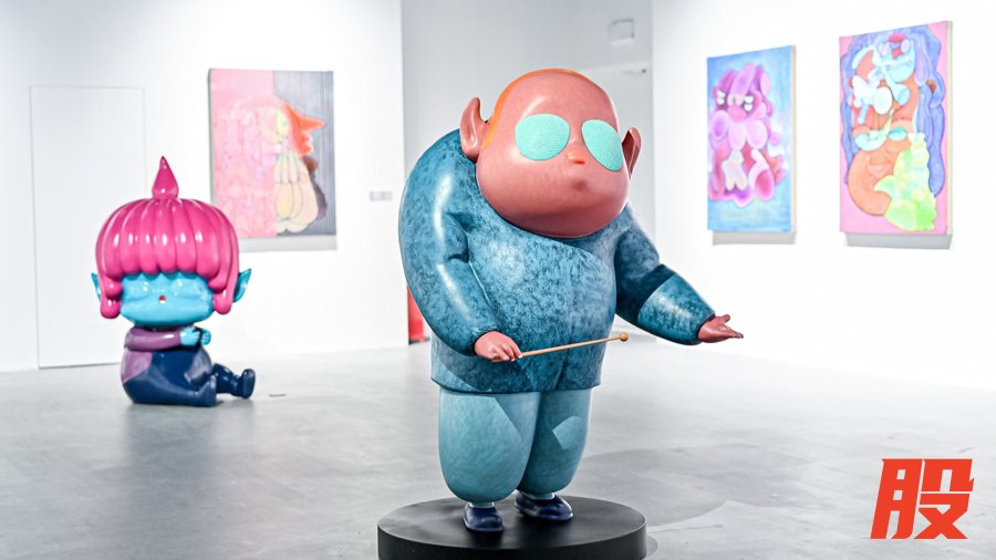 雕塑作品则以多元材质呈现奇趣质感,玻璃钢、铸铜、不锈钢等材质的运用,让精灵、萌物等奇幻形象跃然眼前,既有夸张造型传递的童真趣味,也有金属质感带来的现代审美,与油画作品形成材质与视觉的巧妙对话,丰富了展览的层次与体验。